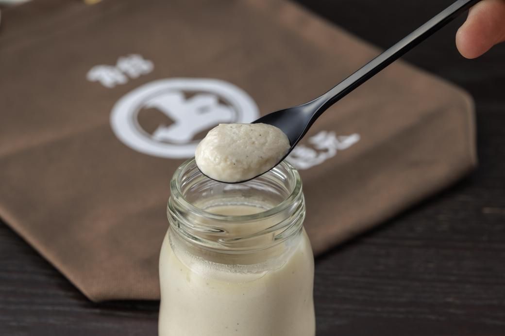 プリン生地には、お米のジュレを混ぜ込みもっちりなめらか食感に仕上げました。醤油の香ばしさとビン底のハチミツとの相性もよく、最後までお楽しみいただけます。